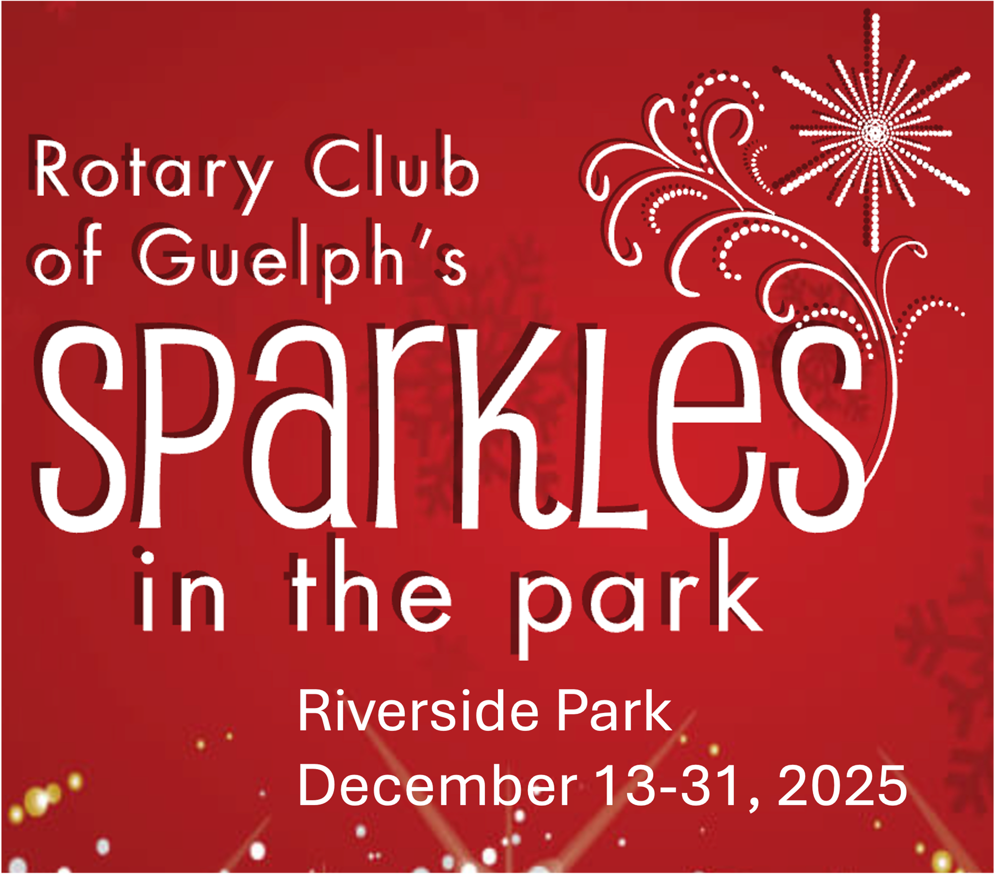 For the 28th year, Riverside Park will light up for festive cheer thanks to the Rotary Club of Guelph. The park will be open for public viewing for 19 evenings from Saturday, December 13 to New Year's Eve on Wednesday, December 31, culminating with fireworks on the last night.
