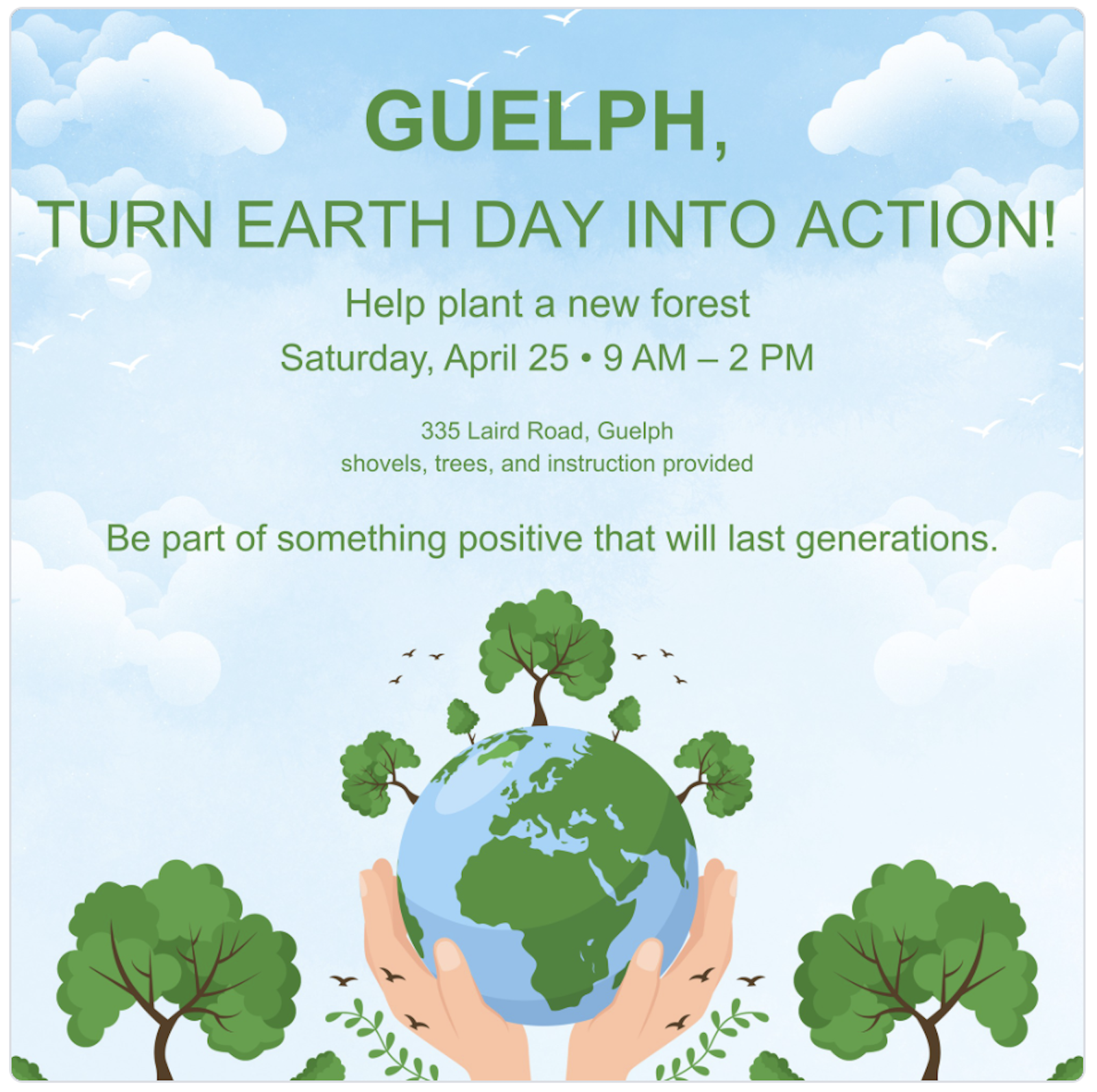 - Earth Day Tree Planting on Saturday, April 25th, to help expand the Hanlon Creek Forest
