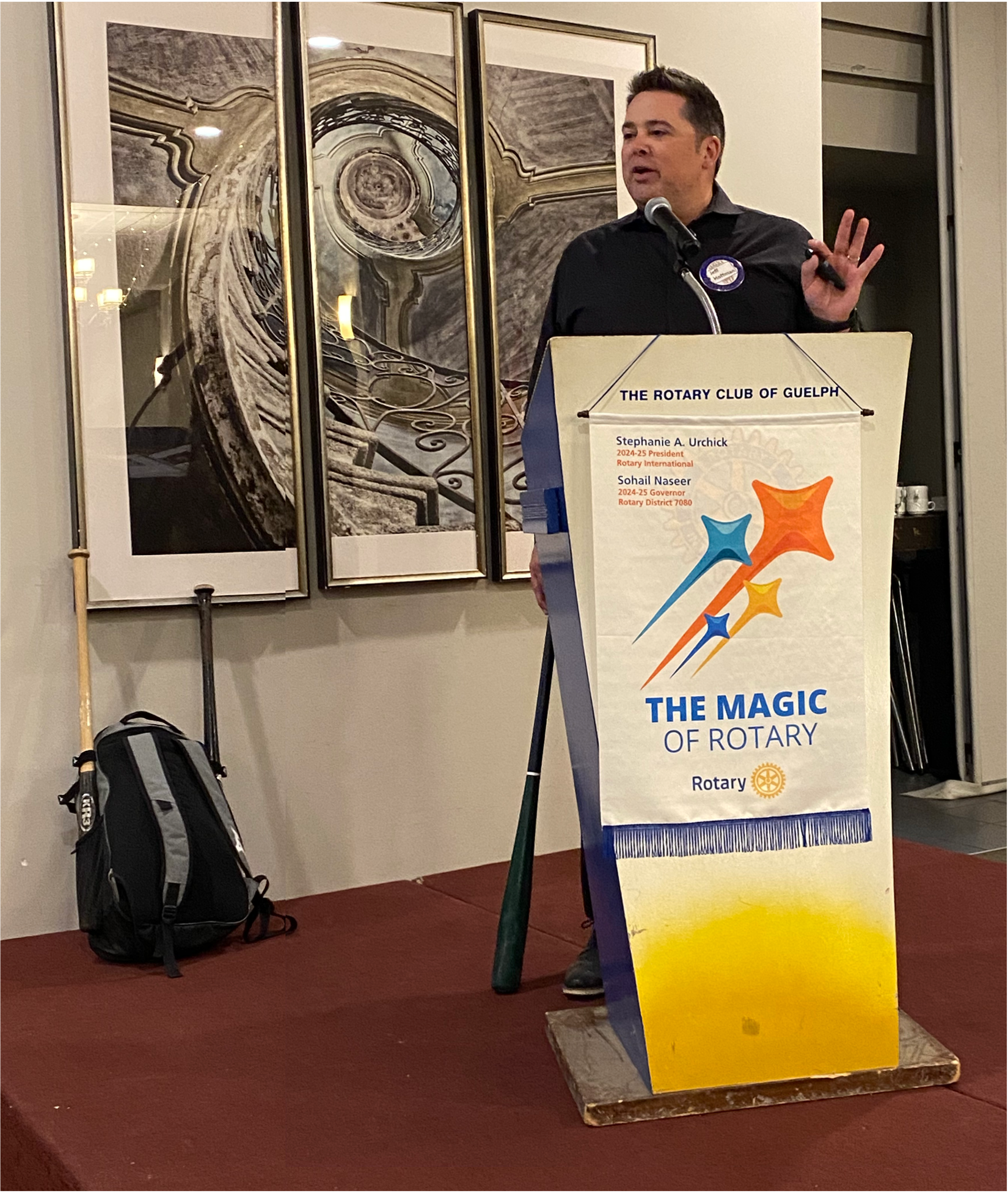 The weekly Rotary Club of Guelph meeting, led by President Brian Martin, covered various announcements, including upcoming events, personal news, and committee updates. The club welcomed member Jeff Hoffman as our guest speaker for his "Up Close & Personal" introduction. Jeff is CEO of The Grove Youth Wellness Hubs, and shared his personal journey and career experiences in the charitable sector, emphasizing the importance of community involvement, family values, and personal growth. (More details below.)